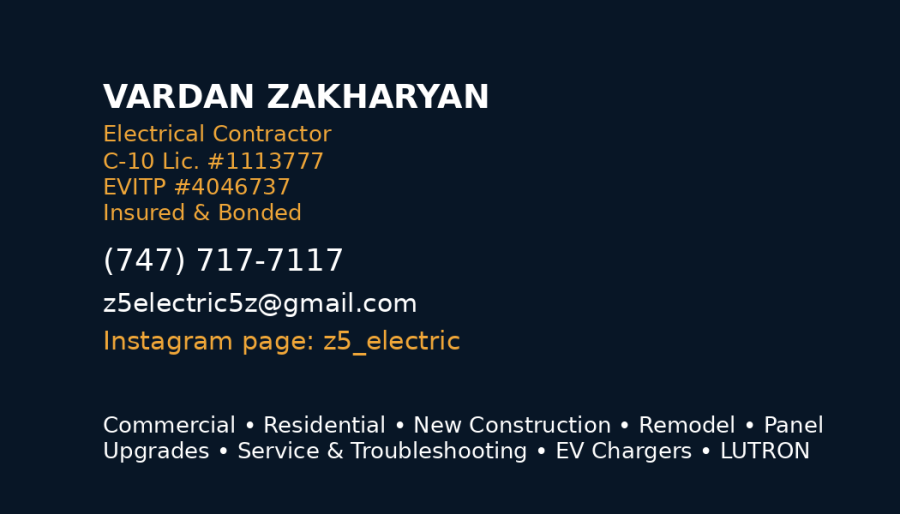 | Description: | Electrician - Licensed & Insured | Commercial & Residential Services Էլեկտրիկ - Լիցենզավորված և Ապահովագրված | Առևտրային և Բնակելի Սպասարկում |
