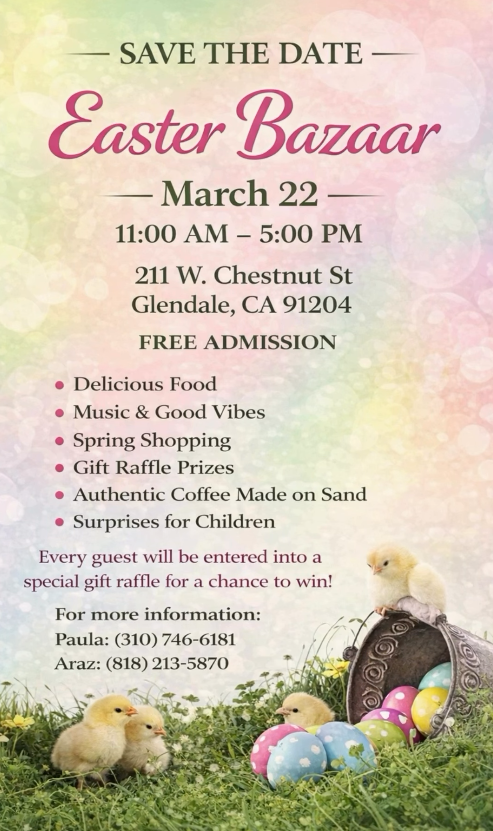 Easter Bazaar - Glendale, CADate of Post: 03-16-2026 08:50