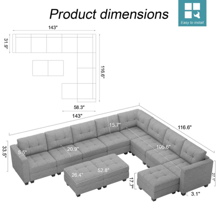 Beibhinn 143 U-Shaped Couch Modular Polyester Blend Sectional SofaPosted on: 12-15-2025 10:04