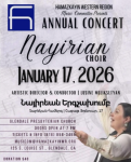 01.17.26 - Nayirian Choir Annual Concert - Glendale, CAHamazkayin Western Region Music Committee Presents Nayirian Choir Annual Concert Artistic Director & Conductor: Lusine Meliksetyan Doors open at 7 PM Donation:... 12-30-2025 04:30 PM PST |