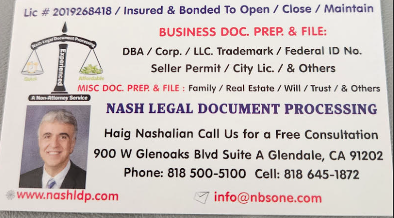 Business Doc. Prep. & file: Dba / Corp. / LLC. / Trademark Fed. & Ca state. Fed. Ein / Seller Permit / City lic & more...