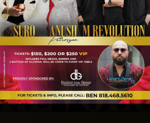 Arsen Shakhunts Live In Concert - Agua Caliente Casinos in Rancho Mirage, CA. March 7, at 6:30 PM. Call: (323) 580-0808
