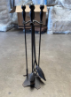 Classic black wrought iron fireplace tool set — includes stand, poker, shovel, brush, and tongs. Sturdy, durable, and perfect for any fireplace or wood-burning stove setup. In great...