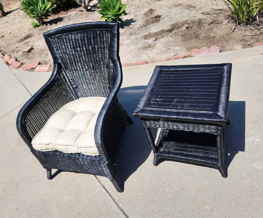 Black Wicker Rattan Bamboo Patio Club Chair w. Side TablePosted on: 01-21-2026 12:52