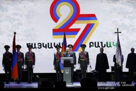 Մեր զինված ուժերը, մեր Ազգային բանակն ահա, մեր երկրի շնչառությունն է, որը չի դադարում ոչ մի վայրկյան՝ անկախ նրանից քնա՞ծ է մեր երկիրը, թե արթուն, և շատ հաճախ մեր բանակի ներկայությունը մեր առօրյա կյանքում, յուրաքանչյուր գյուղի, քաղաքի, յուրաքանչյուր տան մեջ մենք չենք նկատում, ինչպես չենք նկատում մեր շնչառությունը: Եվ այսօր Հայոց փառապանծ բանակի ծննդյան 27-րդ տարեդարձն է, և մենք այսօր այստեղ հավաքվել ենք առաջին հերթին մեր խոնարհումը բերելու մեր բոլոր նահատակներին, մեր բոլոր ազատամարտիկներին, սպաներին, զինվորներին, ում զոհողության վրա է կառուցվել մեր պետությունն է ու անկախությունը, մեր բանակն ու անվտանգությունը, մեր գնահատանքի տուրքը տալու մեր բոլոր զինվորներին, սպաներին և գեներալներին, ովքեր ազնիվ ծառայել են և ծառայում են Հայոց բանակին: