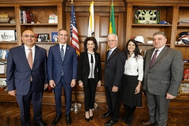 Joining Garcetti at the meeting were L.A.’s First Deputy Mayor of International Affairs, Nina Hachigian and Los Angeles City Councilmember Paul Krekorian. Hakobyan was joined by Armenia’s Consul General to Los Angeles, Dr. Armen Baibourtian and Vahagn Melikian, the Secretary General of Armenia’s Foreign Ministry.