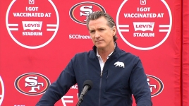 Newsom was in Santa Clara for the opening of the state’s largest mass vaccination center at Levi’s Stadium, which will be set to administer 15,000 vaccines each day.