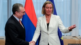 “The implementation of our agreement is proceeding well,” Mogherini told a joint news conference with Mnatsakanian in Brussels. “The dialogue, cooperation and partnership we have on different issues … is excellent, and we also have good plans for the future.”