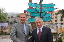 During a special ceremony at Stepanakert’s War Volunteers Park following the meeting, Ghulyan and Tiessier were joined by members of the delegation and other officials in inaugurating a sign that celebrates the friendship between France and Artsakh.