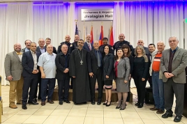 Among the many distinguished guests who were in attendance included: City of Pasadena Chief of Police John E. Perez and his wife Norma, who were accompanied by several Captains, Lieutenants, Sergeants and Officers from the Pasadena Police Department; along with Staff and Representatives from the Offices of United States Congresswoman Judy Chu; California State Senator Anthony Portantino; California State Assemblymember Chris Holden and Los Angeles County Supervisor Kathryn Barger. Also in attendance were: City of Pasadena Manager Steven Mermell and City Treasurer & Deputy Finance Director Vicken Erganian; Rev. Fr. Boghos Baltayan, Pastor of St. Sarkis Church in Pasadena and Members of the Church’s Board of Trustees; Arman Baghdoyan, Chairman of Armenian Cultural Foundation of Pasadena and Members of its Board of Directors; Shoghig Yepremian, Chairwoman of the ANCA Pasadena Chapter and Members of its Board of Directors; Raffi Kassabian, Vice Chairman of the ANCA Western Region; as well as several Representatives from Pasadena’s preeminent service organizations including: the Armenian Relief Society “Sosse” Chapter; the Hamazkayin “Shahan Shahnour” Chapter; the Homenetmen “Azadamard” Chapter including a number of Scouts from its Scouting Corps; the Armenian Youth Federation “Nigol Touman” Chapter and Pastor Vache Sevajian of the Armenian Brotherhood Bible Church of Pasadena; along with Members of the Pasadena Armenian Police Advisory Council.