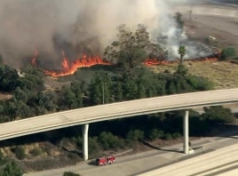 The fire snarled Sunday afternoon traffic and sent up a large plume of smoke that could be seen across the Los Angeles Basin. Traffic jams were reported on surface streets throughout the area, including Colorado Boulevard, as portions of both the 134 and 2 freeways were closed.