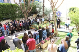 Students, faculty, staff, friends and neighbors walked through a passageway of the garden, placing white flowers under the “Forget Me Not” flower monument. The soundtrack of the event was provided by student Sako Yacoubian, who gracefully played the “duduk.”