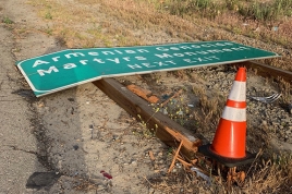 Vandalism or Accident? Montebello Genocide Monument Freeway Sign Downed